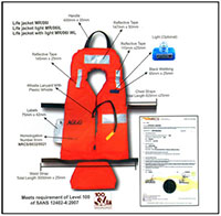 FLOATATION DEVICE - LIFE JACKET Product Code: Life-J Tech: SAMSA SOLAS ,SANS 12402-4-2002 ,PFL-10(100KG)NRCS/8032/0021 Quantity: 5 per carton |