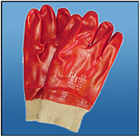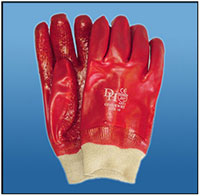 PVC GLOVE (HEAVY DUTY ROUGH TERRY PALM) - KNITTED WRIST Product Code: GPVC/KW/RT Technical Data: Rough terry red PVC glove, knitted wrist length. Sizes: Large Quantity: 120 pairs per carton |