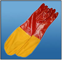 PVC GLOVE - ELBOW 35CM Product Code: GPVC/35 Technical Data: Red smooth PVC glove Elbow length (35cm). Sizes: Large Quantity: 120 pairs per carton |