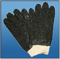 PVC GLOVE (BLACK CHIP PALM) - KNITTED WRIST Product Code: GPVC/KW/BCP Technical Data: Black PVC chip palm glove, A grade knitted wrist length. Sizes: Large Quantity: 120 pairs per carton |