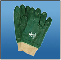 PVC GLOVE (GREEN TEXTURED) - KNITTED WRIST Product Code: GPVC/KW/HG Technical Data: Heavy duty green PVC glove, Knitted Wrist length. Sizes: Large Quantity: 120 pairs per carton |